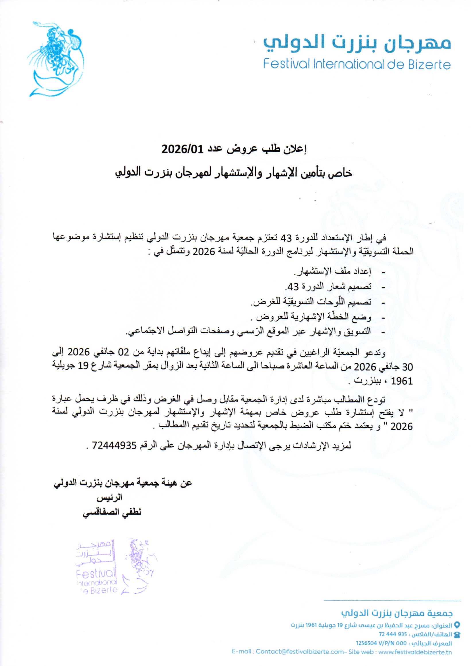 خاص بتأمين الإشهار والإستشهار لمهرجان بنزرت الدولي
