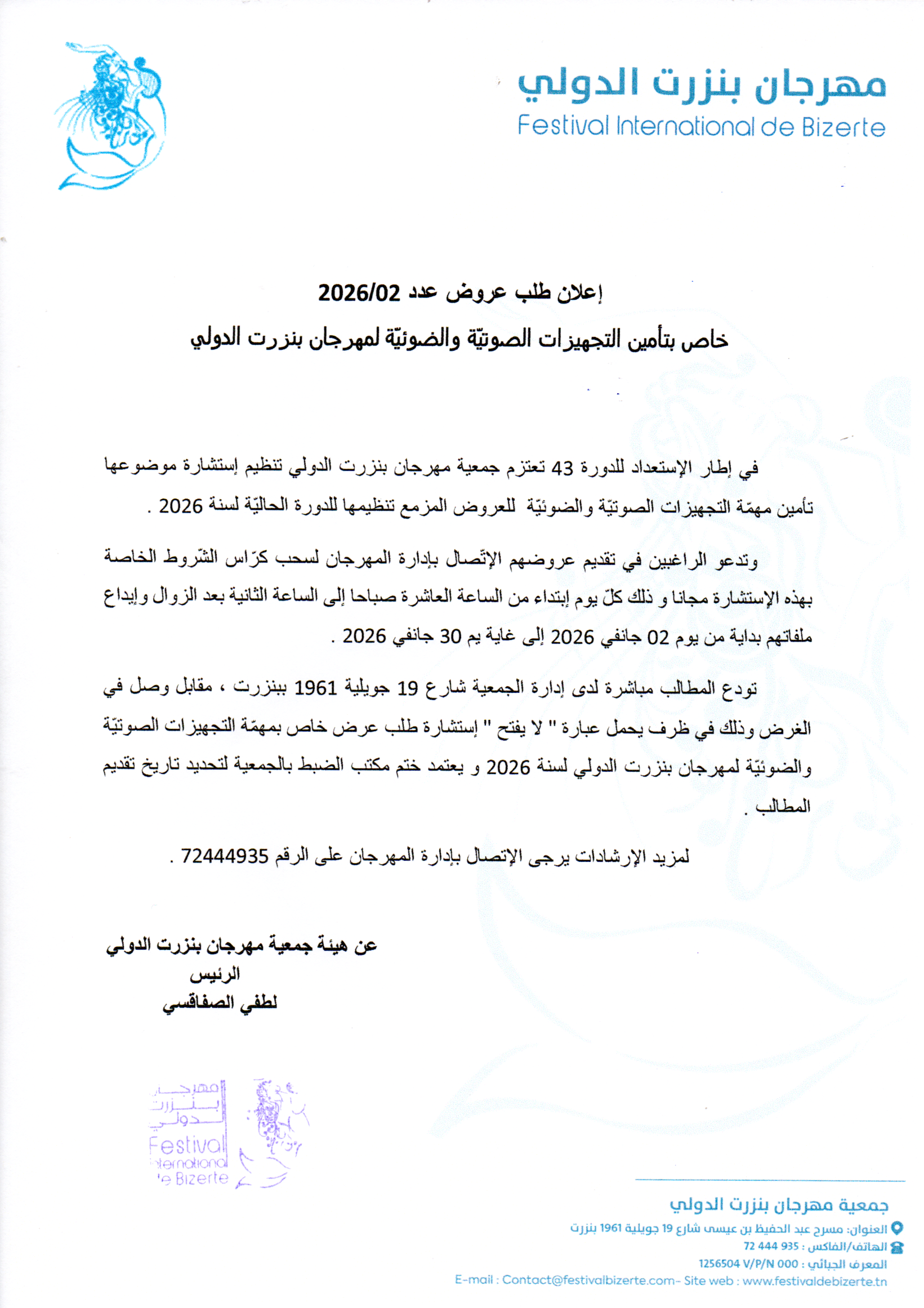 خاص بتأمين التجهيزات الصوتية والضوئية لمهرجان بنزرت الدولي